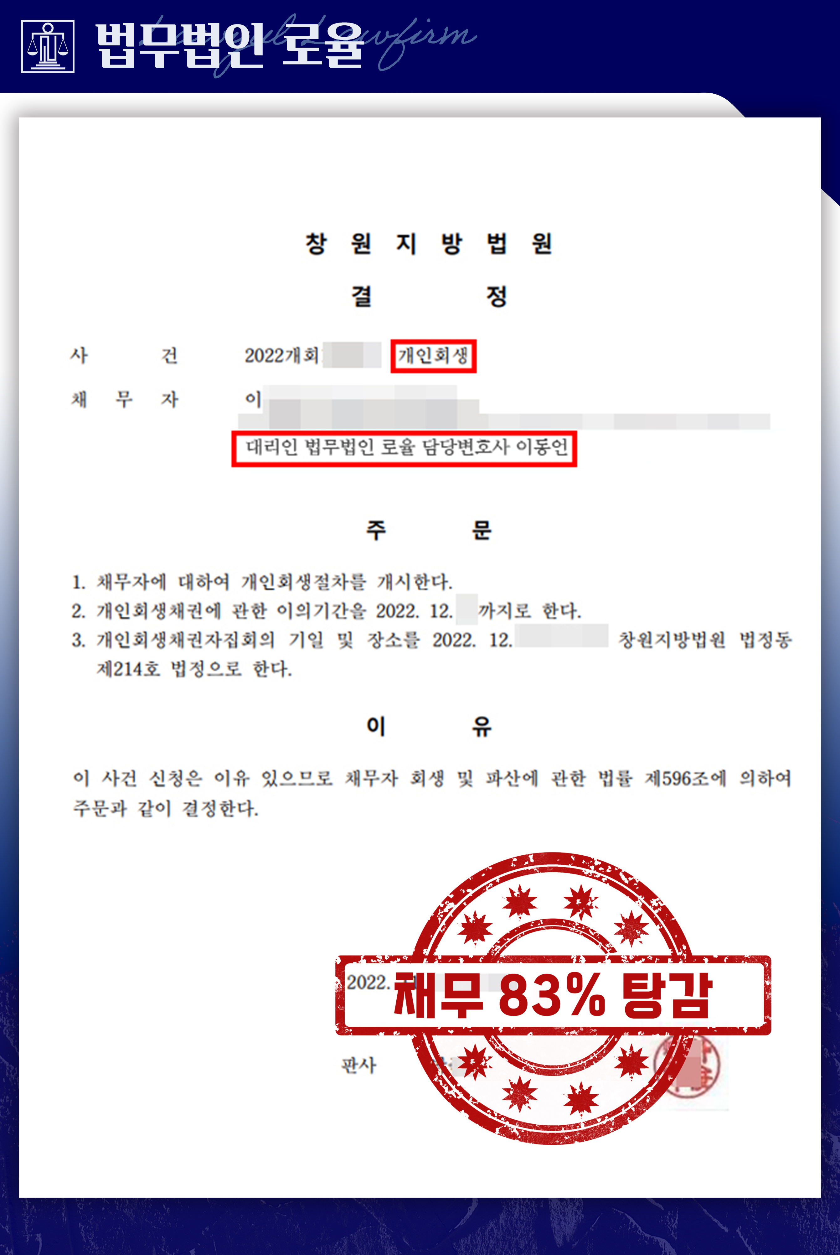 넷째, 개인회생법률사무소로서의 체계적 사건 관리입니다. 채권자 목록과 채무 금액을 정확히 확정하고, 보정명령에 대비한 자료를 선제적으로 준비하였으며, 부산회생법원의 추가 소명 요구에도 신속하고 정확하게 대응하였습니다. 이를 통해 개인회생전문변호사의 전략적 조력 하에 인가 가능성을 극대화하였습니다.